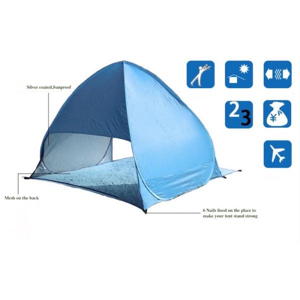 150*150*90CM Outdoor Waterproof Pop Up Canopy Tent Sunproof Silver Coated 190T Polyester Automatic Beach Shelter Images |